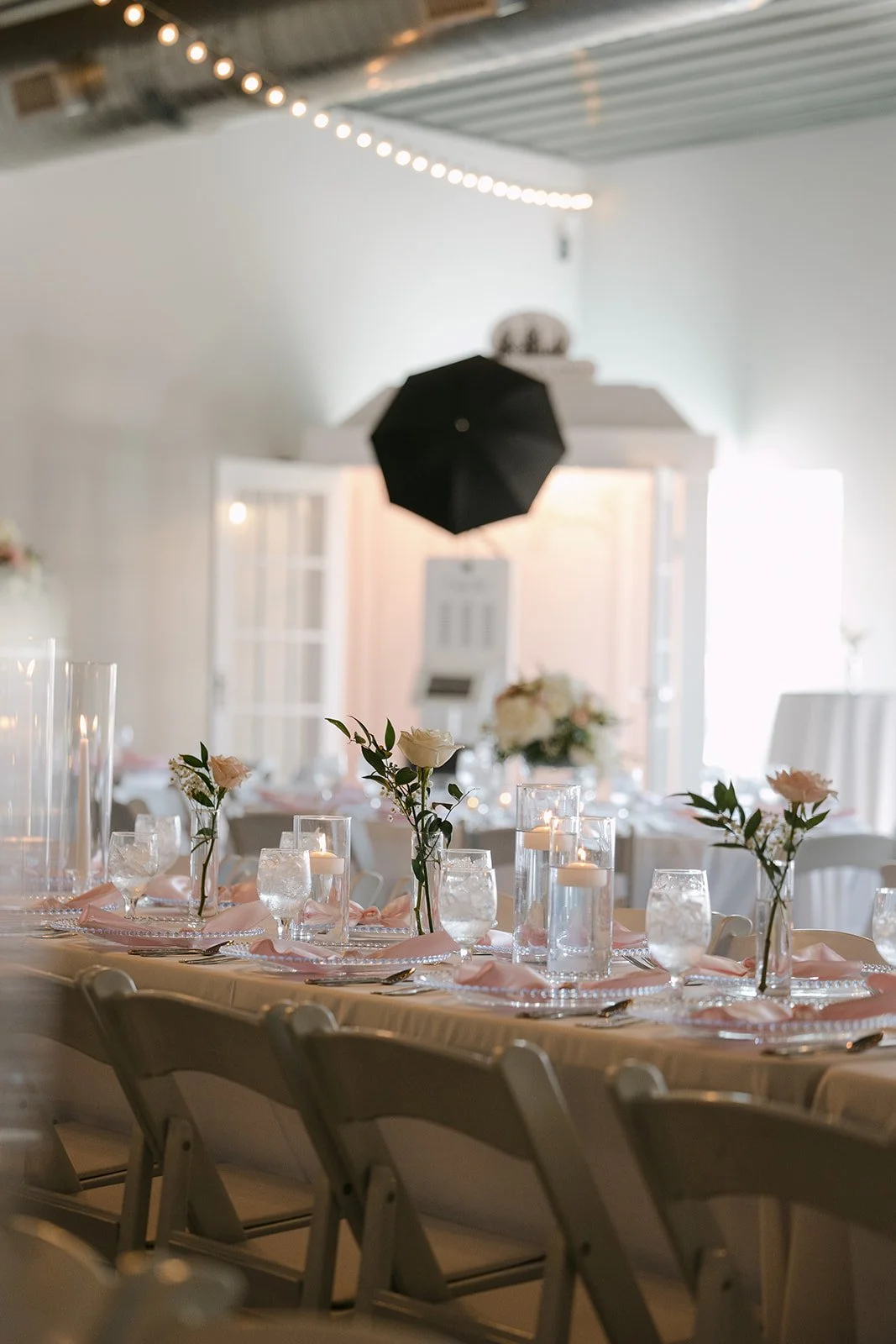 Access to the grounds and parking lot, indoor + outdoor ceremony options, indoor + outdoor bar space, warming kitchen, handicapped accessible bathrooms, large and accommodating bride and groom suites, hanging lights, all tables and chairs, table clothes, decor options, photo booth (digital only), Ceremony coordination, custom table layouts, and event hosting staff. set up and take down of tables, chairs, linens, and decor at the beginning and end of your event. *